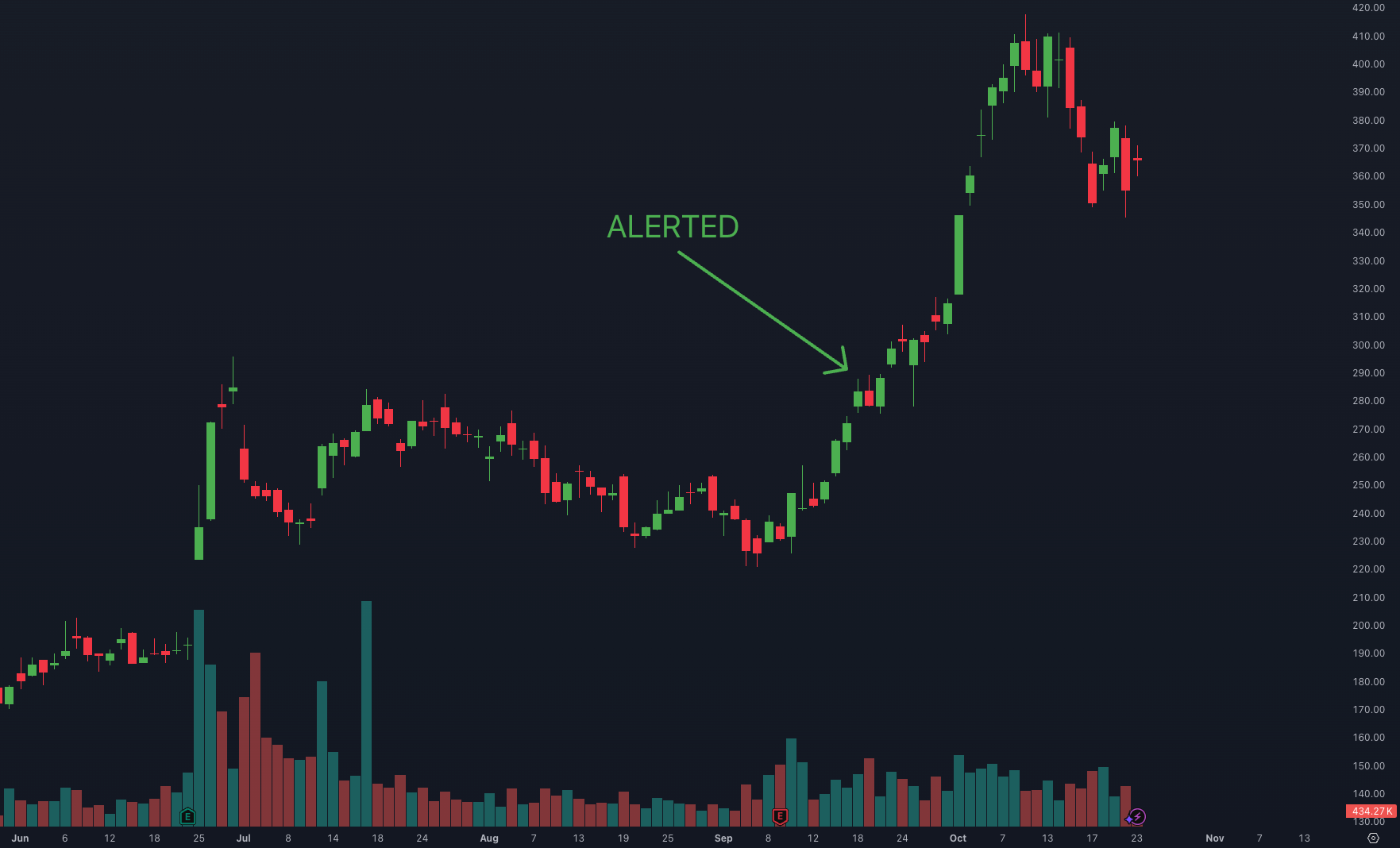 Today it’s sitting at $366 — a +39% breakout in just under 6 weeks.