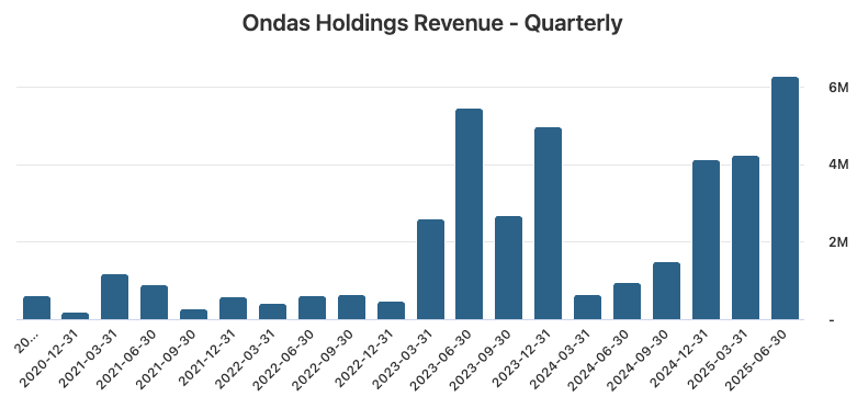 Ondas Holdings Inc. (NASDAQ: ONDS) is a technology company focused on providing wireless data solutions for mission-critical industries, including rail, public safety, and drone operations. It operates through two main segments: Ondas Networks, which develops private wireless connectivity platforms, and Airobotics, which builds autonomous drone systems for industrial and defense applications.