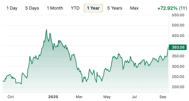 Looking to accumulate under $400. The stock has been clowly rising for months and is setting up for another breakout. Should likely hit $500 in it’s next long term run.
